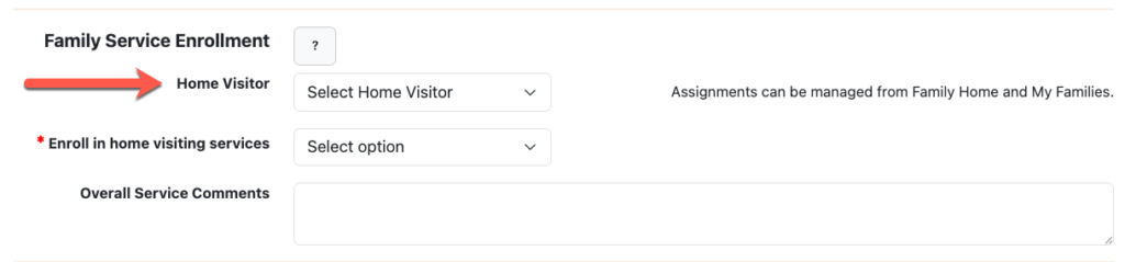 - Admins can choose to assign or leave the Home Visitor field unselected.
