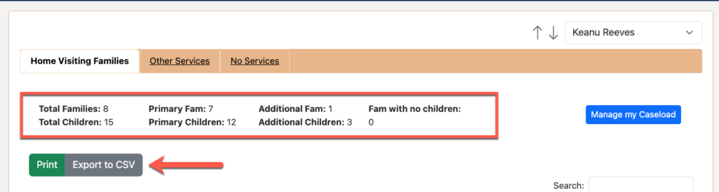 - Other Services – Will list families that are enrolled in other services. Families that are only enrolled in home visiting will not be listed on this page