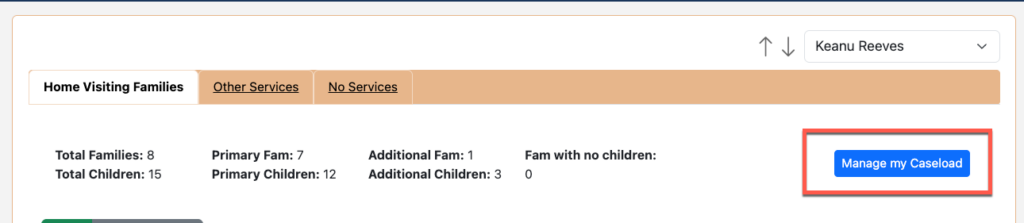 Click on “Manage My Caseload” to reassign or grant additional access to families.