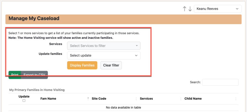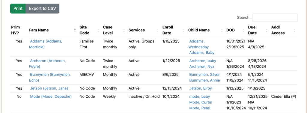 - Home Visiting Families – Only families enrolled in home visiting services will be listed. They may also be enrolled in another service but have to be enrolled in home visiting