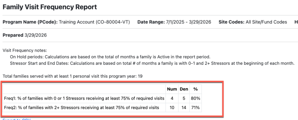 The Visit Frequency report now includes the Frequency 1 and 2 outcomes at the top.